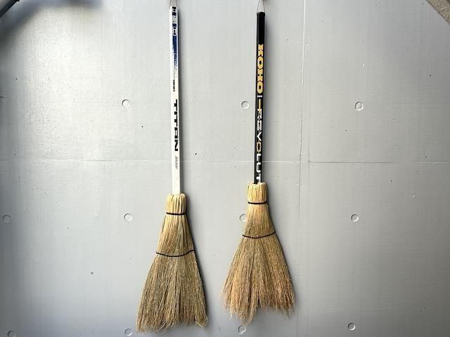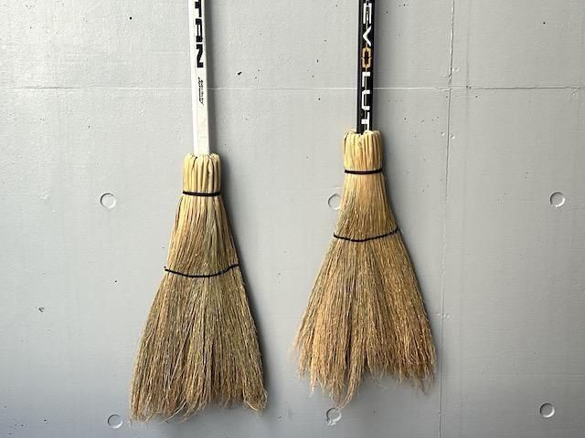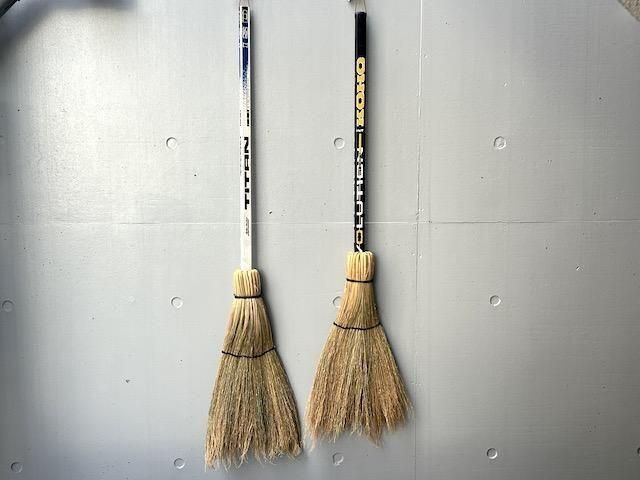 ホッケーのスティックを再利用したとてもユニークな持ち手のホッケーホウキです。