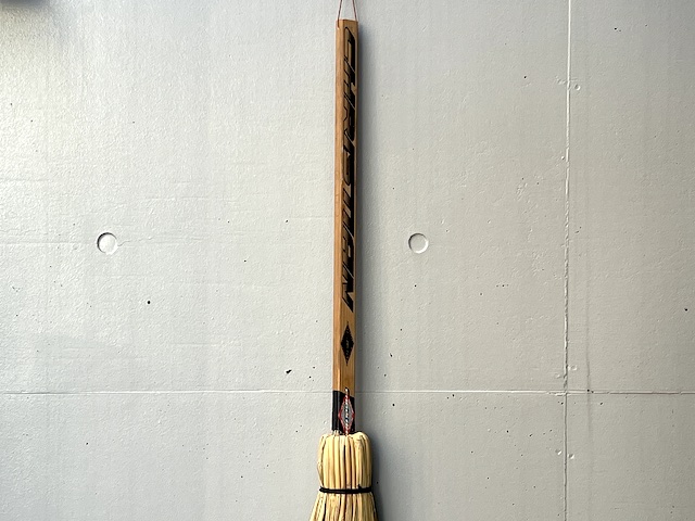 ほうきキビやカヤをきつく編み上げたユニークなホウキは使わない時はインテリアの飾りとして見た目にも楽しい掃除道具です。