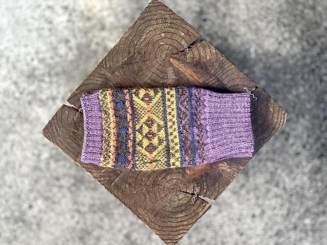 配色のバランスに拘ったフェアアイル柄のアームウォーマー。