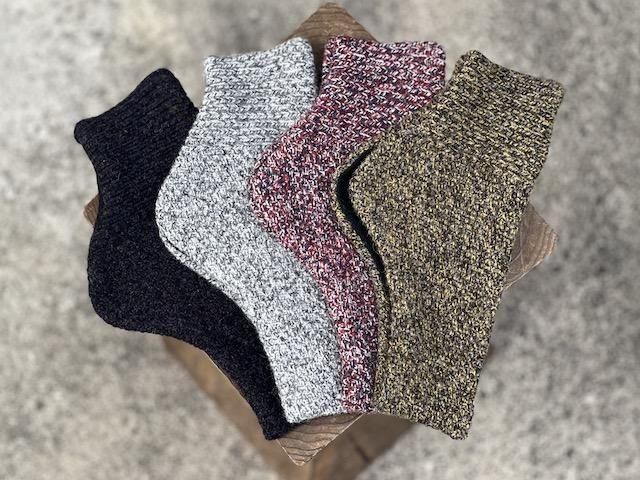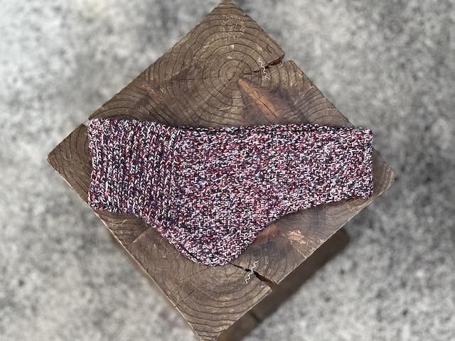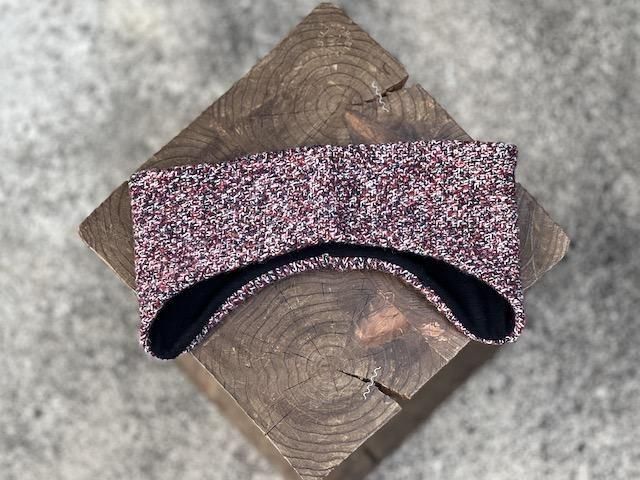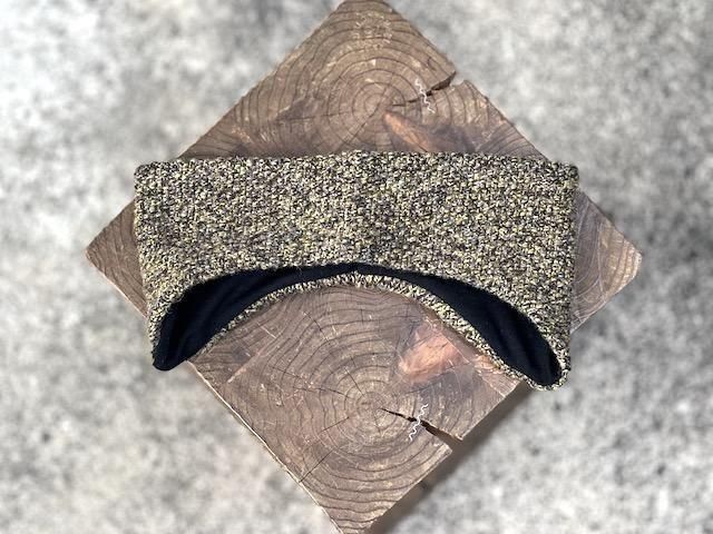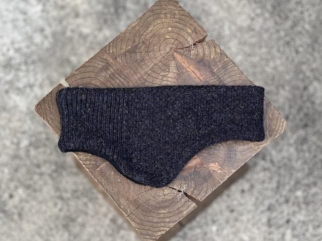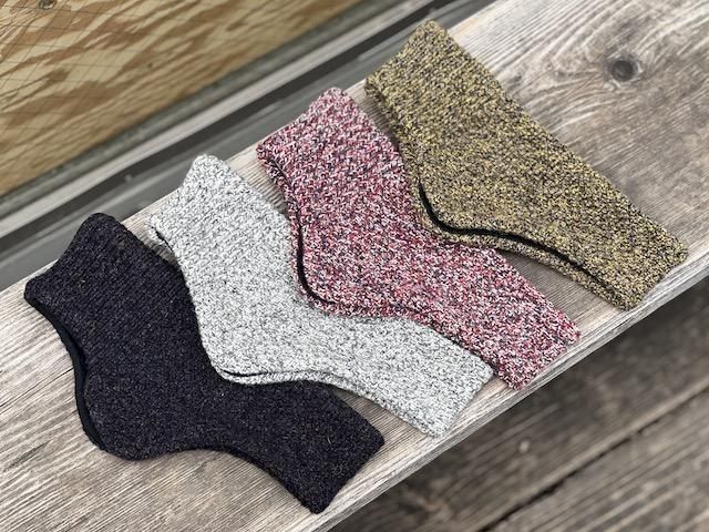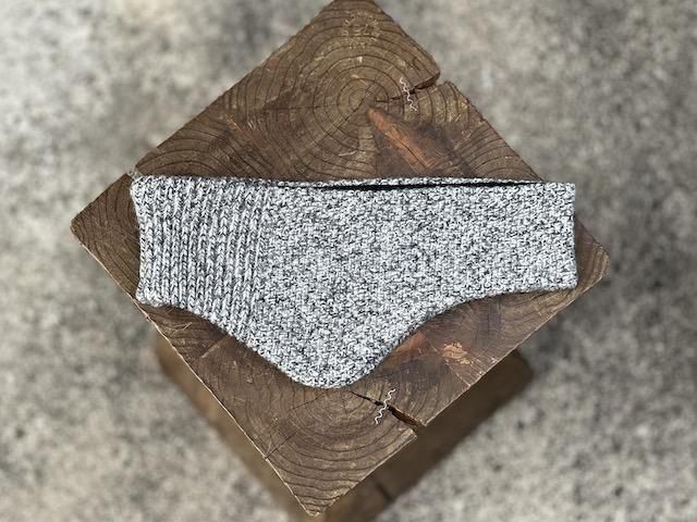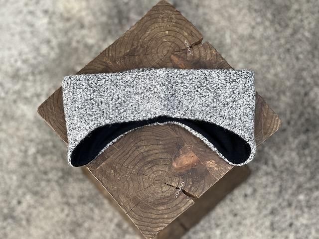 表はリンクス編みでメランジ感のある表情がポイントの英国羊毛をブレンドしたウール糸、裏はカットソー生地にすることで優しい肌触りです。